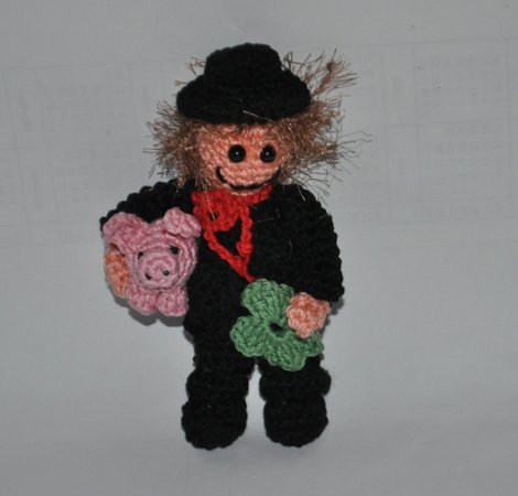 Häkelanleitung schornsteinfeger mit glücksschweinchen und kleeblatt. Glücksschweinchen mit klee und hufeisen häkelanleitung